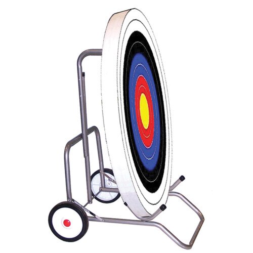 Le support portatif sur roulettes pour cibles est fait de tubes d'acier galvanisés de 2,54 cm (1 po). Le support pour cibles se déplace facilement grâce aux roulettes de 20,32 cm (8 po). Il peut accueillir des cibles de 60,96 cm à 121,92 cm (24 po à 48 po).