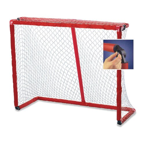 Voici un but de hockey de rue pliant en ABS. Il est doté d'un cadre complet en plastique durable de 1¼ po, d'une barre de support centrale à l'arrière, d'un filet solide en nylon avec des manches et de coudes repliables pour un rangement facile. Les dimensions du but sont de 54 po x 44 po x 24 po.
